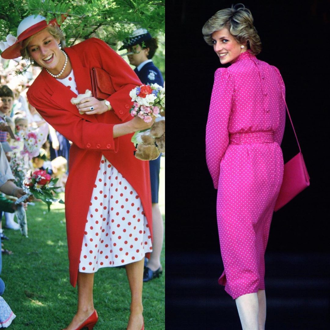 #ELLEfashion スタイルアイコンとして名高い故ダイアナ元妃✨常にスタイリッシュな着こなしを披露していたが、そんな彼女が最も愛したパターンのひとつといえば、ドット柄!さまざまなオケージョンでまとったアイコニックなポルカドットファッションを、ここにプレイバック💘