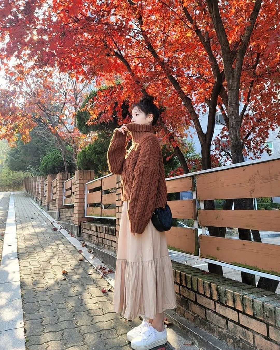 キュートな笑顔がチャームポイントのダヒョンは、ざっくり感がかわいいケーブル編みニットにロングスカートを合わせた寒い季節にぴったりのスタイルを披露❄️ニットは丈が短めのタイプを選んで下半身をすらっと見せつつ、プラットフォームスニーカーで身長を底上げ、トップでまとめたお団子ヘアで視線を高く演出するなど、シンプルコーデのなかにも使えるテクニックが満載💪🏻