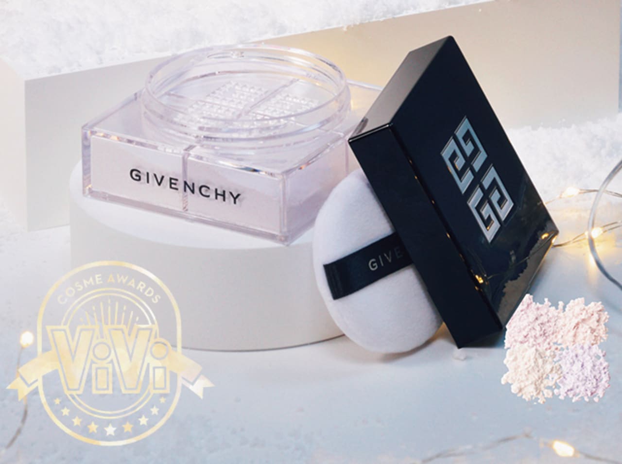 「サラッと触りたくなるような心地よいパウダー。毛穴をカバーしながら、ハリ感の出るツヤと明るさはきっちりキープ」(ヘアメイク 林由香里さん)、「透明感がすばらしく、全顔にしっかりつけても違和感ゼロ。ふわふわフォギーな肌を作れます」(モテクリエイター ゆうこすさん)