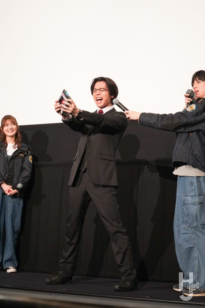 まずは飛世ユウマ役の戸塚有輝、石堂シュウ役の金田 昇、夏目リン役の水谷果穂、伴ヒロシ役の西 興一朗、辻本貴則監督が登壇。最初の質問として「フィナーレを迎えた今だから話せること」を聞かれると、辻本貴則監督は「SKIPのメンバーが、すごく見ていて気持ちがほんわかするというか。優しい4人が集まったチームなんだなあと。このメンバーで良かったと思っています」西は「楽しい思い出しかなかったです。すべて楽しかったです!」水谷は「寄生された経験はすごく衝撃でした」と『ウルトラマンアーク』の日々を振り返る。