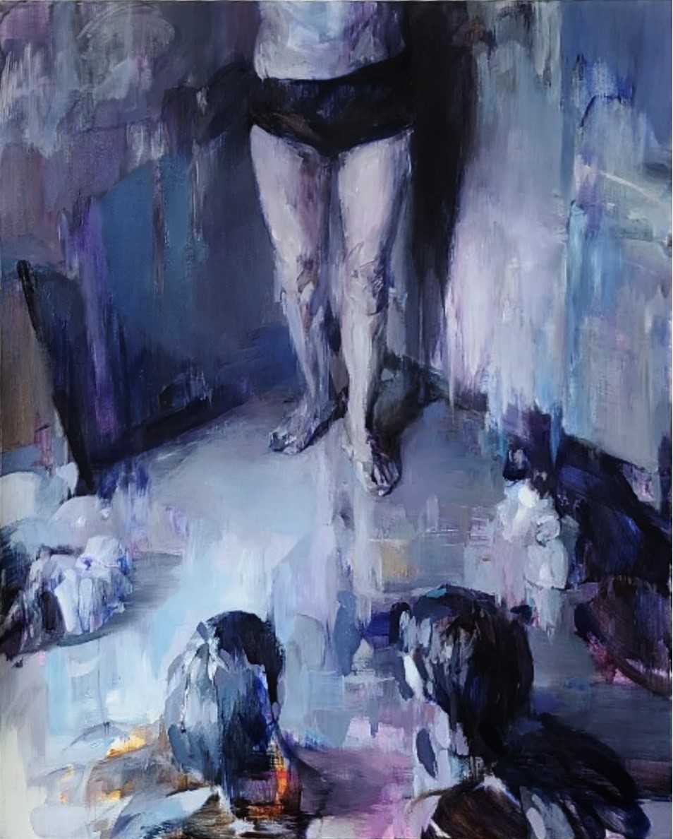 私は主に人物や、人物を含む空間を手がかりに絵画を制作しています。制作は、デジタル上でのドローイングやイメージのコラージュから始まり、そこから構築される絵画空間は、ひとつの完成された像を目指すのではなく、常に変化し続け、流動的で不安定な様相を帯びています。