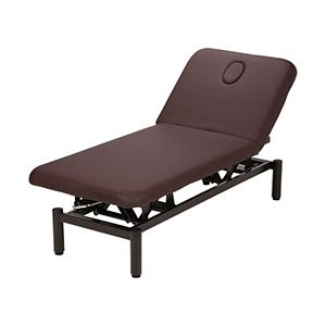 ▲手動昇降 リクライニングマッサージベッド (有孔) 長さ185×幅75×高さ52~92cm ブラウン