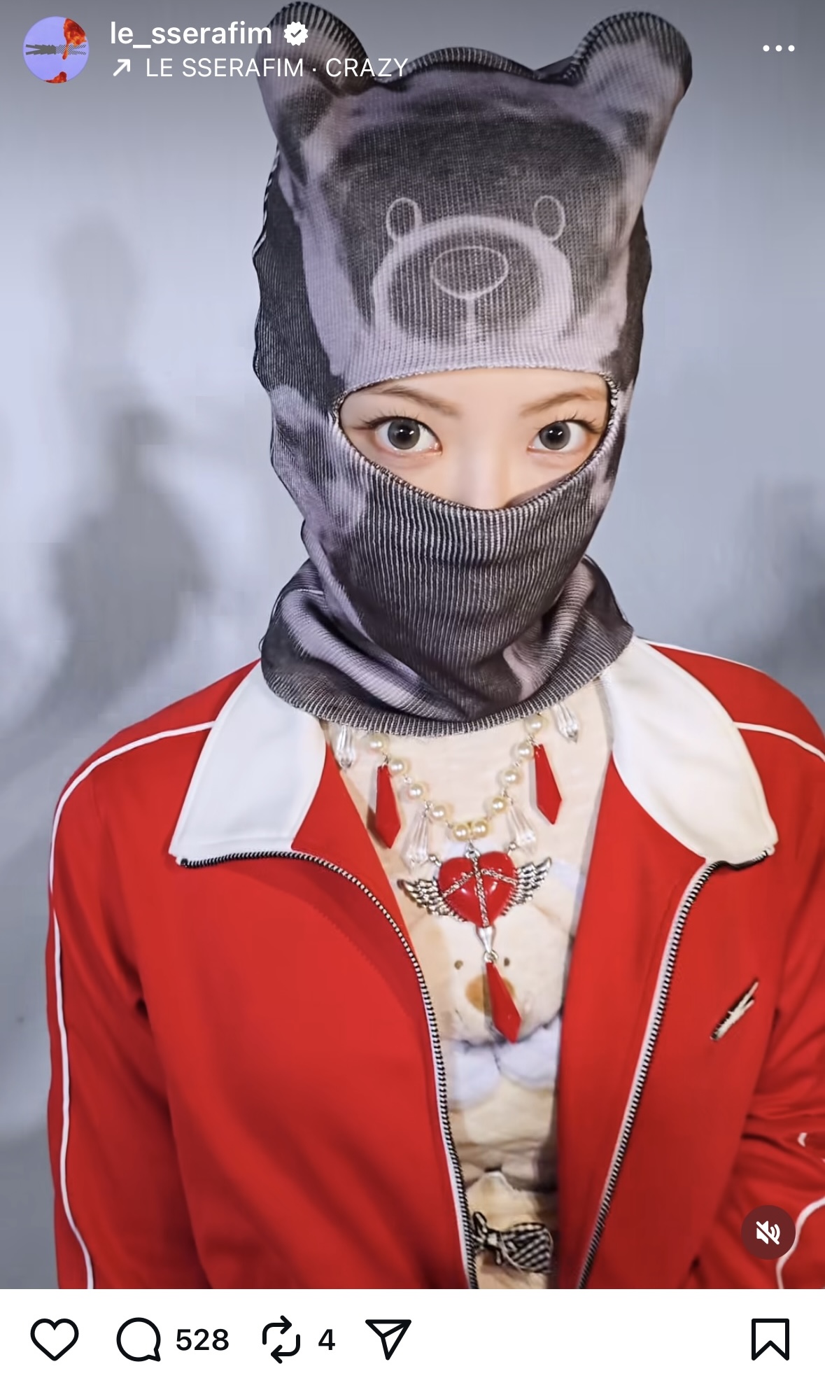 4thミニアルバム〈CRAZY〉パッケージのバラクラバを着用する LE SSERAFIMウンチェ インスタグラムから(@le_sserafim)