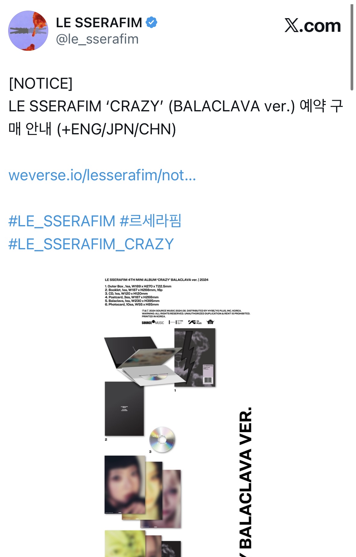 4thミニアルバム〈CRAZY〉バラクラバパッケージ LE SSERAFIM Xから (@le_sserafim)