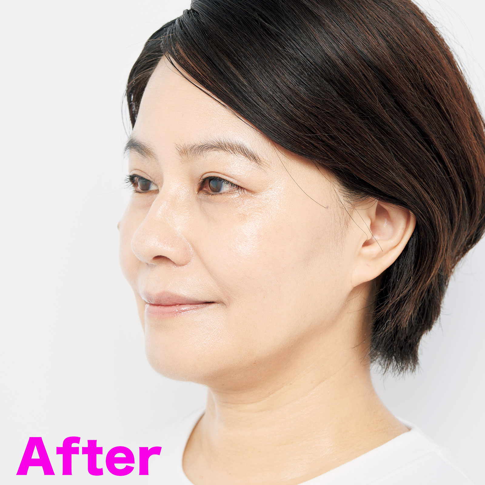 「使うとすぐに引き締まり感が。顔色もぱっと良くなって朝にも使いたくなるくらい。こっくり系のクリームですがなじむとさらりとした仕上がり。1週間ほどで明らかにフェイスラインや目の下のゆるみがタイトになり、実力を実感できました。即効性の高さに手放せなくなりそうです!」