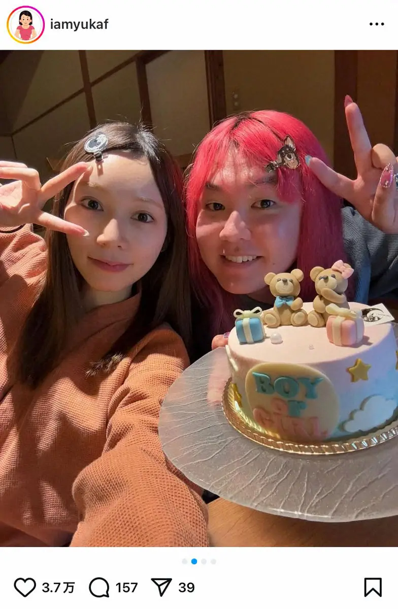 自身のYouTubeチャンネルでも「親友が誕生日プレゼントに連れてきてくれた宿で性別大発表」と題した動画を公開しており、「動画みたあとに4枚目みてね笑」と締めくくった。