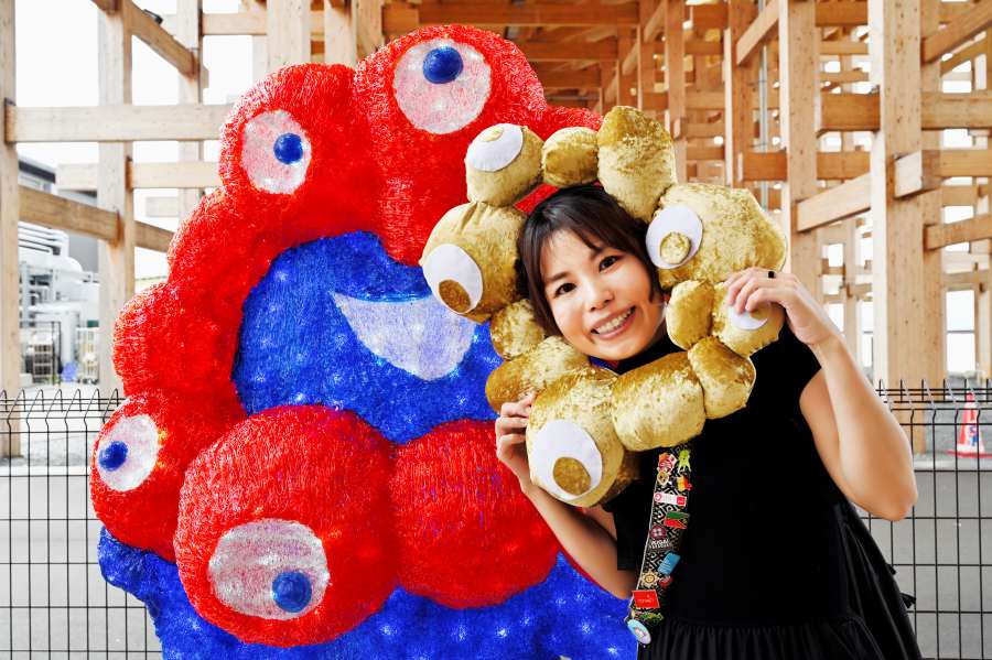 「NTTパビリオン」には、元気なミャクミャクなりきり集団が。ハロウィンでも毎年仮装していると話すこのグループは、万博最終日のために、女性陣が一週間かけて手作りしたミャクミャクなりきりコーデで来場し、1日万博を満喫。会場内でもかなり注目を集めていた。