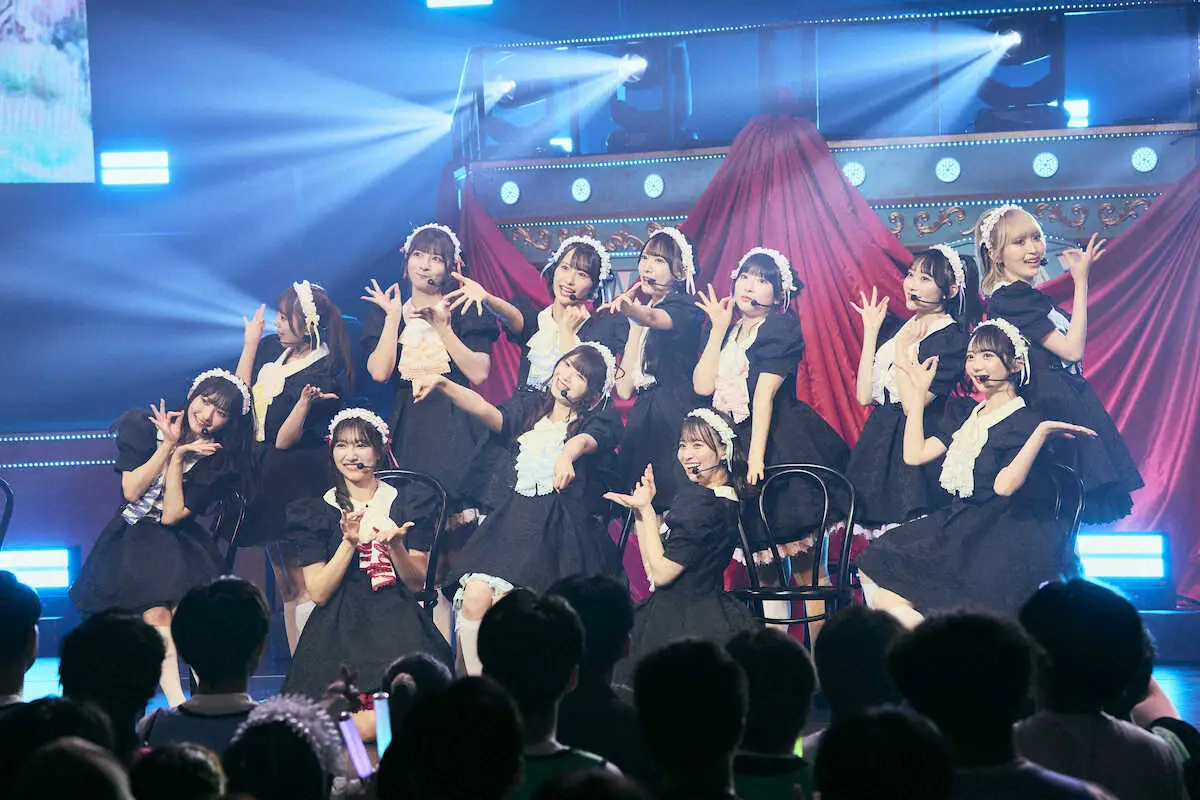 海の冒険をテーマに、海賊風の衣装で登場し、勢いよく幕を開けると、その後はメイド服や制服、透明感あふれるレースのドレスなど、さまざまな衣装に七変化。多様なコンセプトで観客を楽しませた。