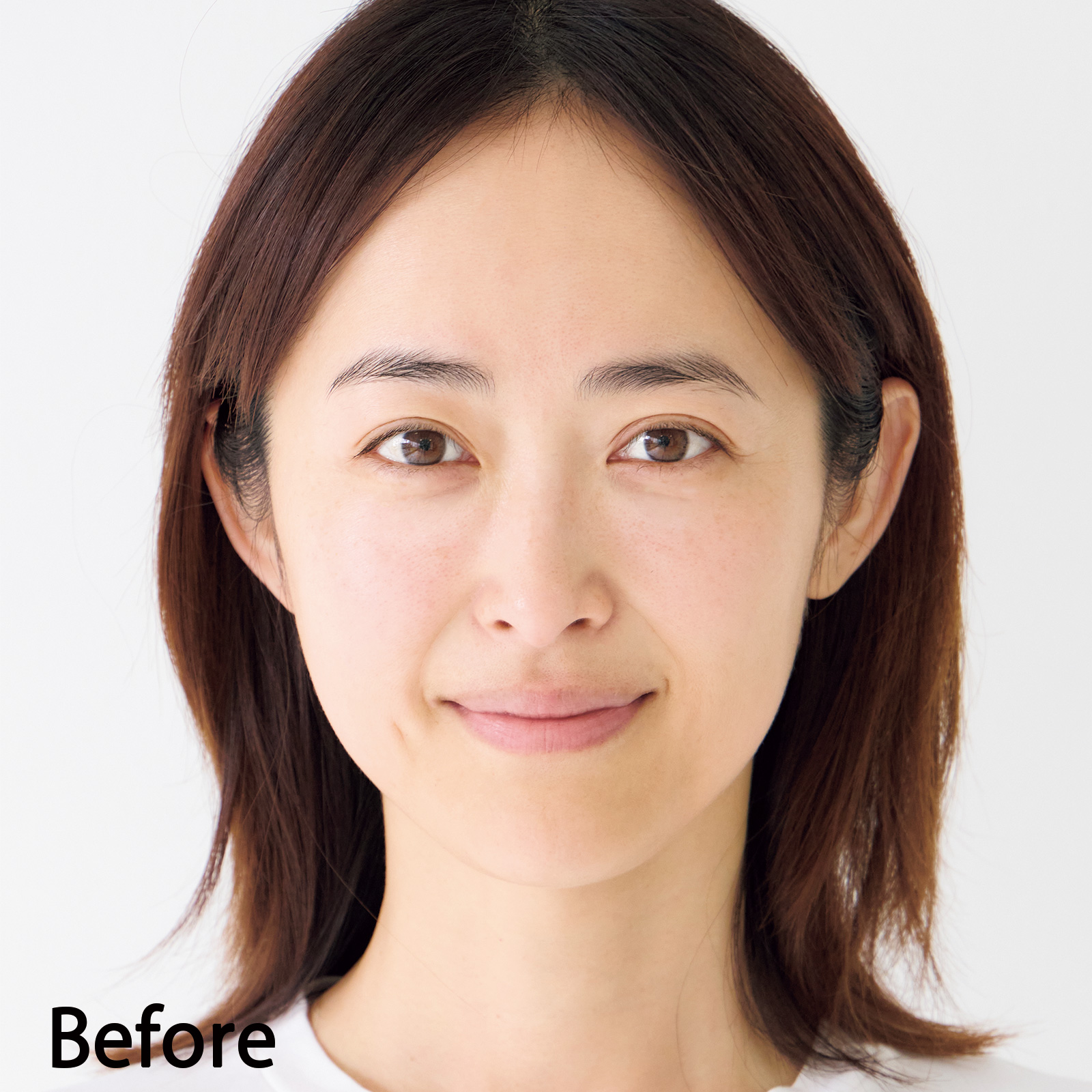 適量は米粒大。下地は頰から首まで境目なく、リキッドファンデをごく薄く。光やシャドウで骨格を掘り起こすのは気づかれない程度に。1:下地は肌のトーンを上げたいところを中心に