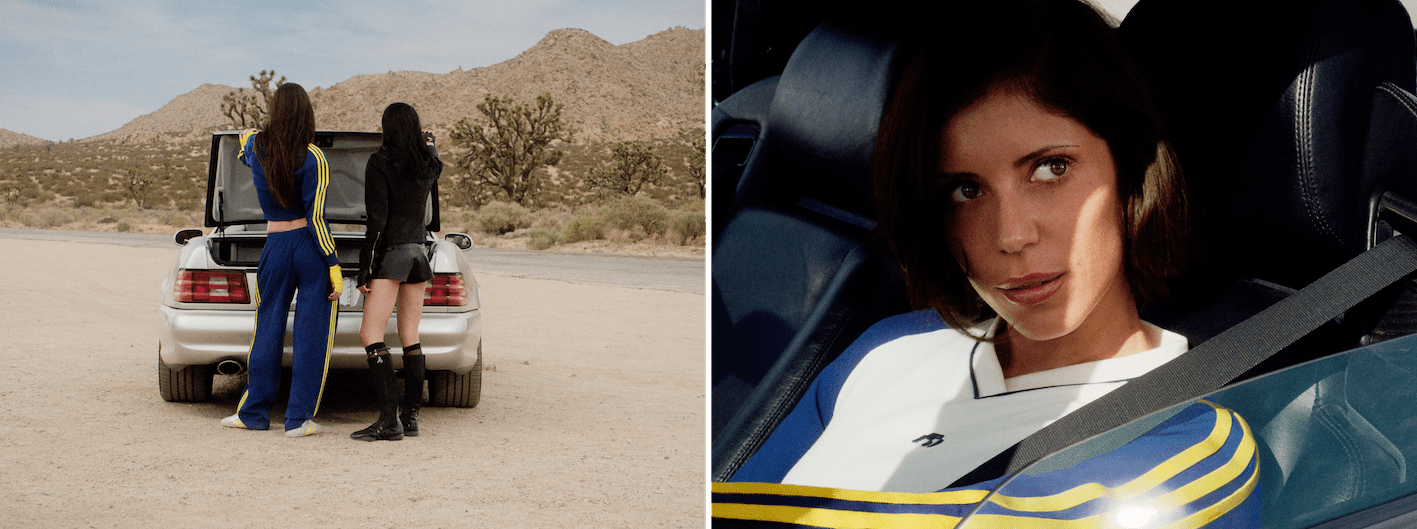 今回のコラボレーションでは、モータースポーツから着想を得たコレクションを展開。Miaouらしいフェミニンで構築的なシルエットに、adidas Originalsのスポーティーなエッセンスがミックスされた、フェミニン×スポーツスタイルを提案する。