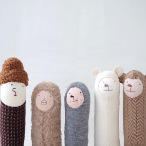 ユニークな柄と愛くるしい表情がたまらないお人形たち。それぞれ違った個性を放っているのは、古着を活かしたアップサイクルだから。ひとつひとつ表情が違うから、ぜひお気に入りの子を見つけてみて♩