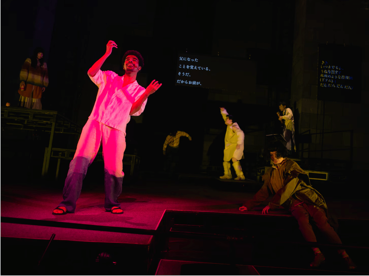 音楽も素晴らしかったけれど、コンテンポラリーダンスというか、特異的な身体表現という文脈でも素晴らしかった。ビートを刻む音楽に合わせて、まるで体が振動するような形でずっと小刻みに体を震えさせる身体表現が印象に残る。それが狂ってしまったような感じにも見えるし、音楽に合わせて人々が共鳴し合っている、つながっているようにも感じられる。親と子が、そして生きている者と死んでいる者が繋がっているという演劇でしか表現できない方法で描いている点が興味深かった。