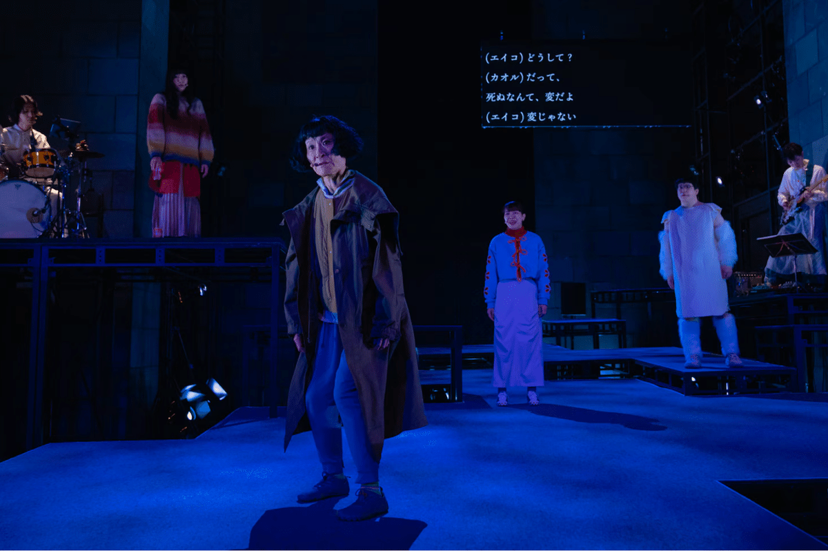 戯曲にも心揺さぶられる要素はあったのかもしれないが、どうしても音楽や異色な演出面に気を取られてしまうので台詞があまり頭に入ってこない感覚を抱いた。