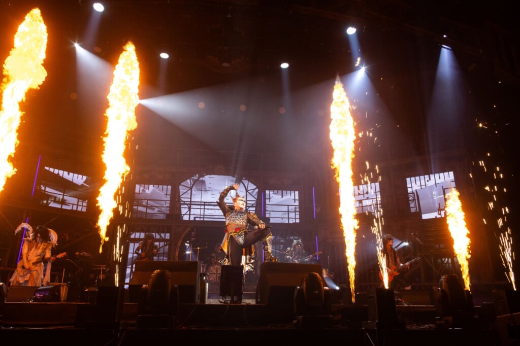 静かに熱い空気の中、珠玉のバラード曲「BAD AGAIN」がアリーナを包み込んだ。激しいばかりではない耽美な聖飢魔IIの魅力だ。一転して、今や伝統芸能とも評される前口上から“お前も蝋人形にしてやろうか!”の雄叫びと共に「蠟人形の館」で完全にギアチェンジ。「悪魔組曲作品666番・序曲」ではスーパーアリーナの大観衆が大合唱で一体となり、唯一無二の荘厳なる世界観が会場を揺さぶった。