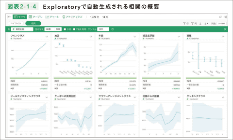 Exploratoryでは、ボタンをクリックするだけで相関を表すビジュアルを生成できる