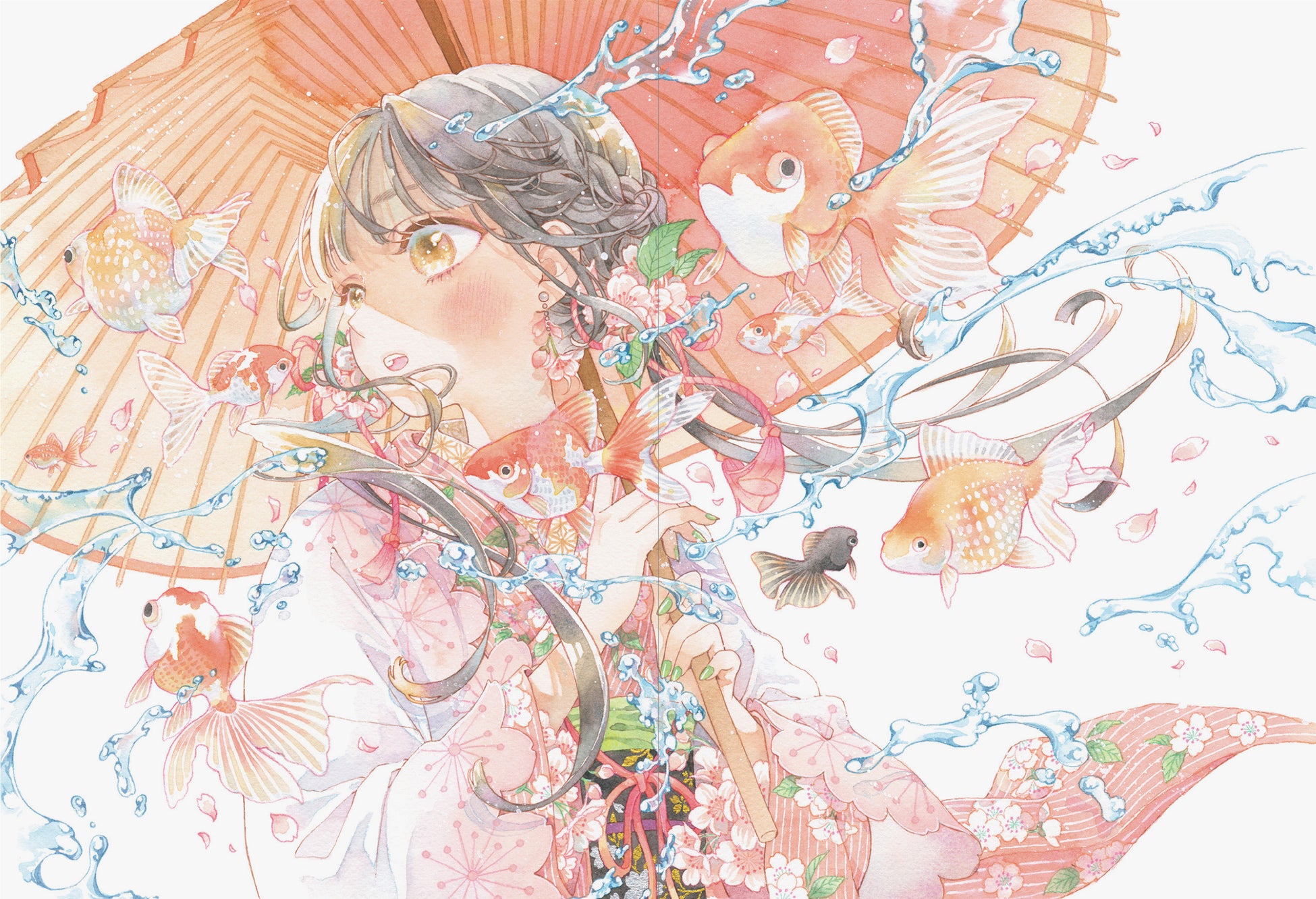 ・着彩(肌/目/髪/傘/髪飾り/着物/帯/金魚)