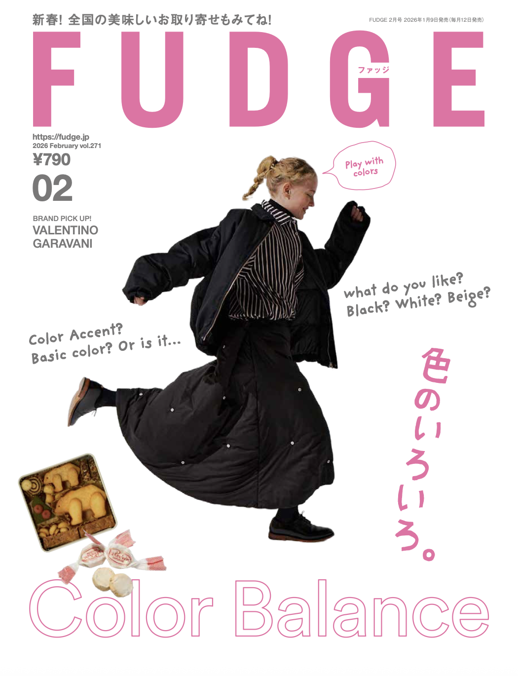 『FUDGE』2月号は「色のいろいろ」特集。今回は本誌の「2色であの子はお洒落する」企画とリンクして、ベーシックカラー同士の組み合わせから、強めの色を主役にした配色まで、2色で楽しむバイカラーのコーディネートをご紹介。