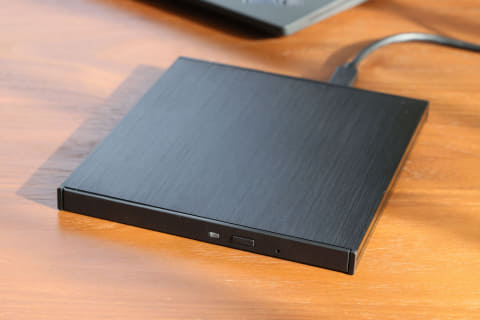 ドライブはUSB-Cコネクターを搭載し、バスパワーで駆動。外形寸法は約133×146×12mm(幅×奥行き×高さ)で、重量は約210g。約50cmのUSBケーブルと、USB-C/A変換アダプタ―、ゴム脚を付属する。