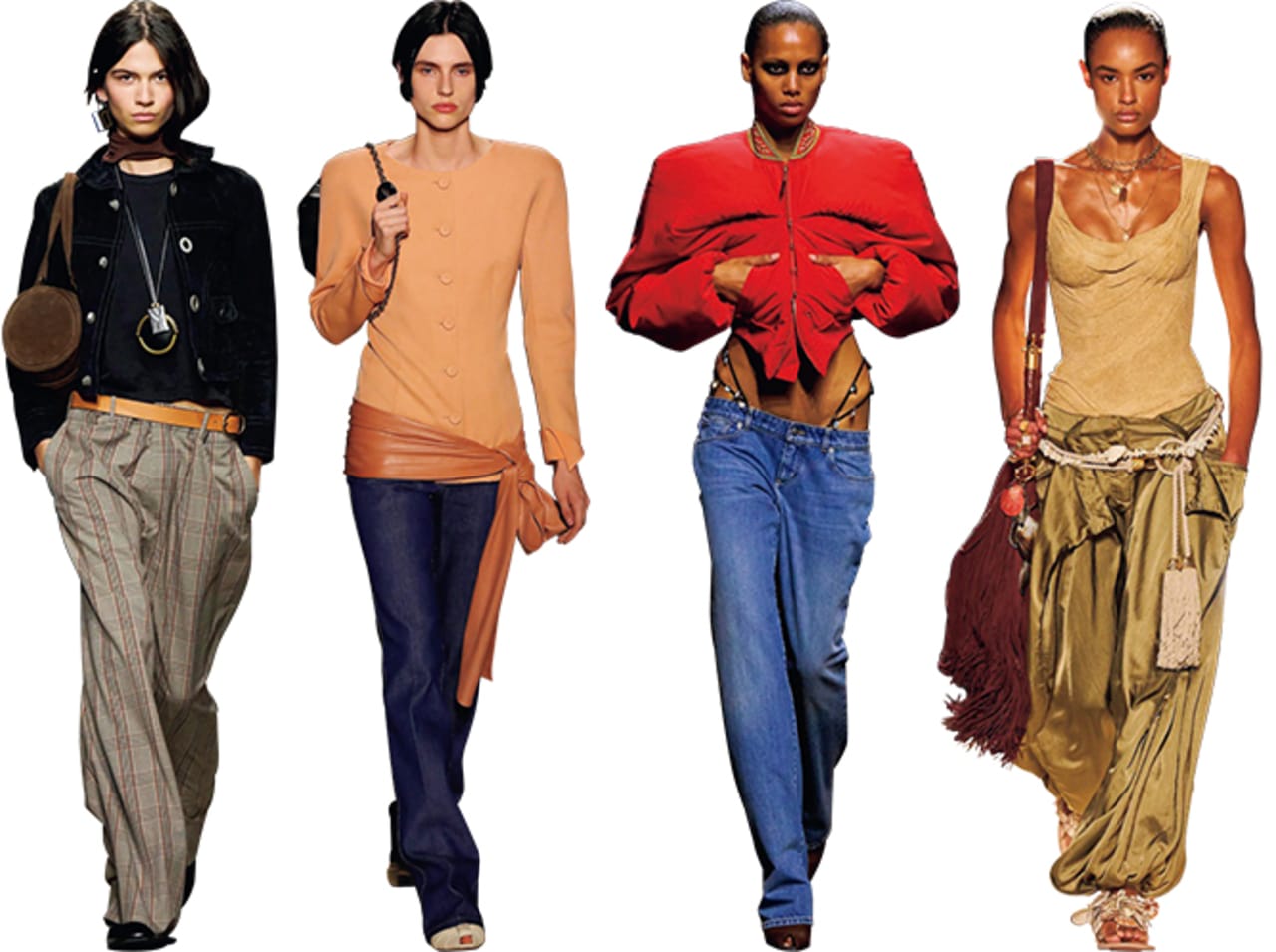Alexander McQueenのバムスターパンツを筆頭に、多くのメゾンでローライズのパンツが登場。トップスはシンプルに、インナーをちら見せしたり、ベルトでマークしたりと腰まわりで遊びを入れるのが着こなしのポイント。