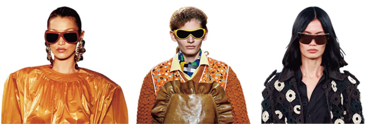 顔まわりのアイテムで最も印象的だったのが大きめのサングラス。意外にも、どんなテイストにもはまる万能アイテムで、コーデの決め手として、自信を持って取り入れたい。