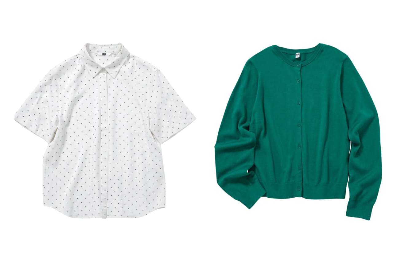UNIQLO:ドットシャツ×カラーカーデ