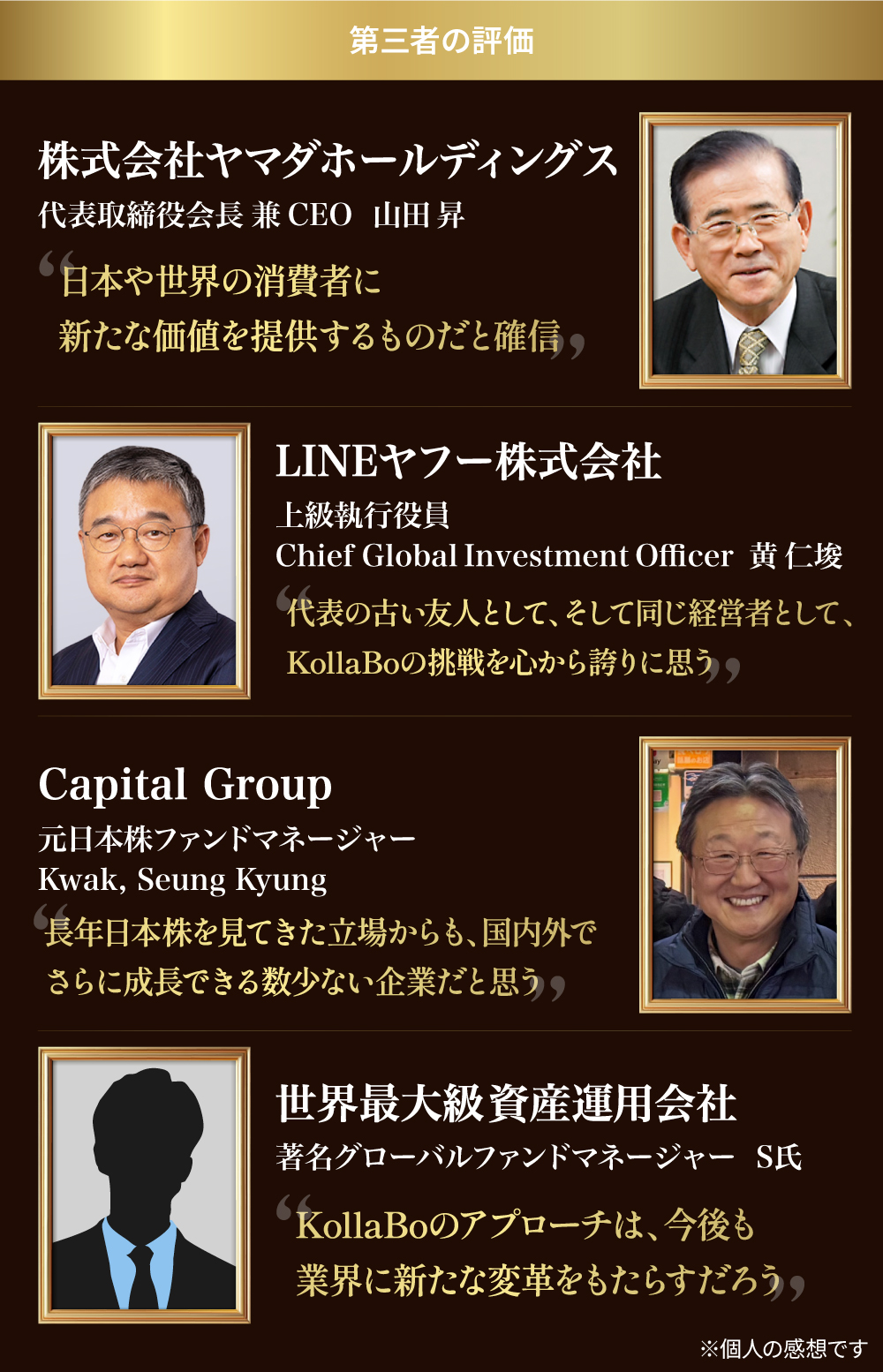 創業にあたっては、この志に共感いただいたセガサミーホールディングス株式会社の創業家※をはじめ、株式会社ヤマダホールディングス会長の山田氏、LINEヤフー株式会社上級執行役員の黄氏、Capital Groupの元ファンドマネージャーなど多くの経営者から協力を得て、事業を立ち上げました。