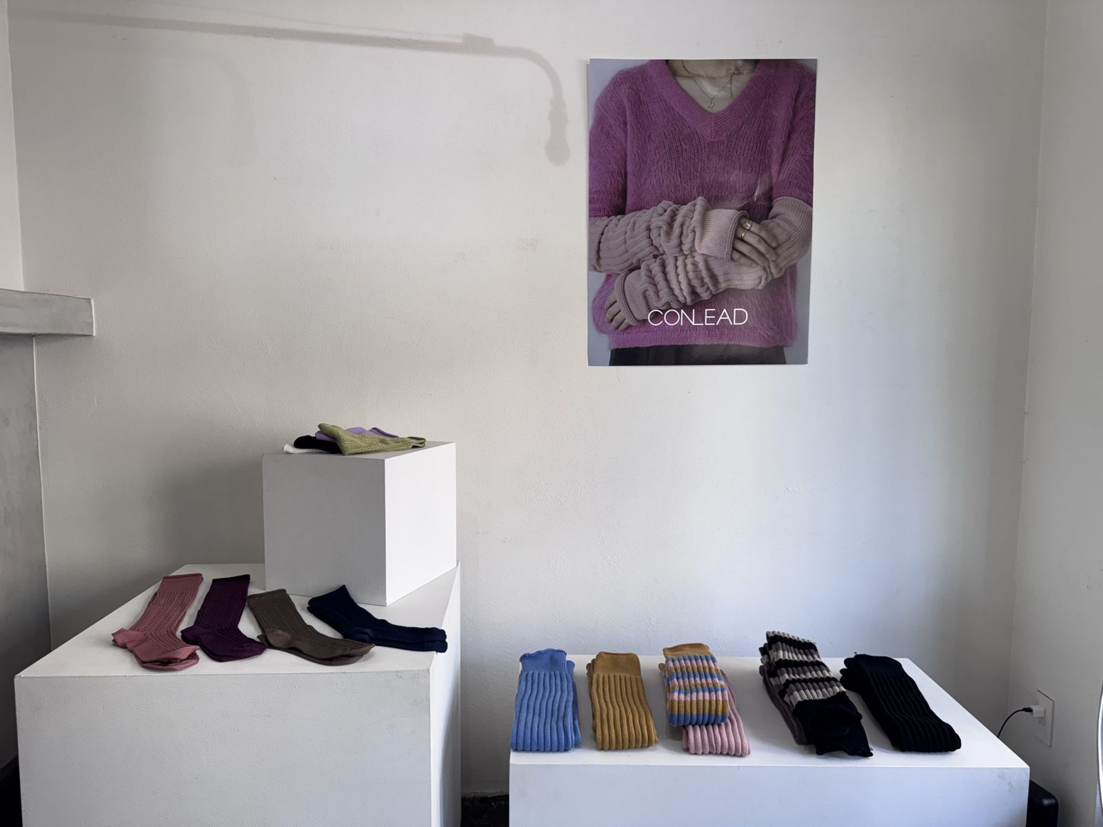 もう一つがバイヤーの“予算”だ。だ。低単価かつ、生産量に制約があるソックスがメイン商材では、ビジネスのスケールは難しそうな印象を受ける。ただ神谷氏は、バイヤー時代の経験から「単価の低さがむしろ武器になる」と感じたという。「買い付けにおいて、最もシビアなのはお金の部分。予算枠が限られている中で、新規ブランドを買い付けるハードルはかなり高い。だがソックスであれば単価が小さいから、チャレンジもしやすい」。「コンリード」の1回の最低発注金額は上代で15万円に設定しており「アウターの発注を1着減らせば捻出できる」。バイヤー経験があるからこそ、バイヤーの「予算」という制約を理解した上でのセールストークが、くどき文句になっている。ブランド発足当初はトゥモローランド時代から付き合いのあるバイヤーが試しに仕入れ始めたが、実際に履いて「ソックスの概念が変わった」と実感し、リピートに繋がっていったのだという。