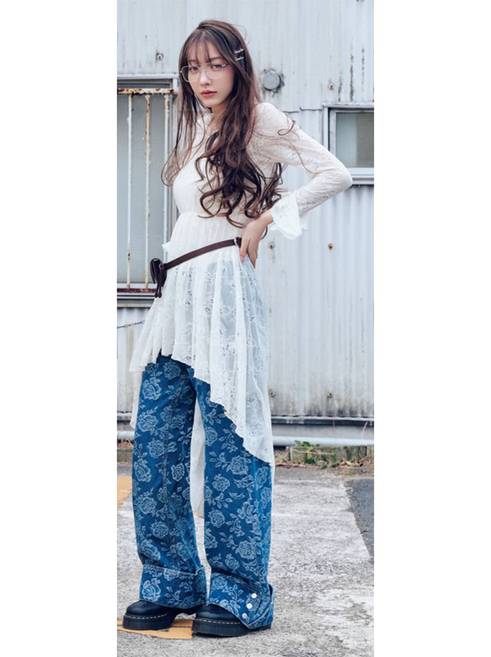 フード付きレースワンピース(インナーとセット)¥14400/EVRISルミネエスト新宿 デニムパンツ¥17600、メガネ¥3993/バロックジャパンリミテッド(SLY) ロゴヘアピン(2本セット)¥12980/ノウハウ(ノウハウジュエリー) ベルトバッグ¥10670/HANA KOREA(mucu and ebony) ソックス¥990/タビオ(靴下屋) シューズ¥28600/ドクターマーチン・エアウエア ジャパン(Dr.Martens) ●商品情報はViVi2026年4月号のものです。