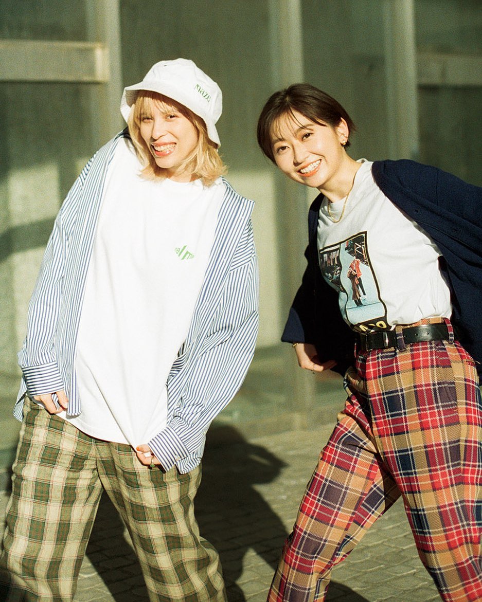 「いつも見てるよロンT」をはじめ、面白ネーミングにも注目したいチェルミコのマーチ。グッズを手がけるのは友人のグラフィックデザイナー、大倉龍司さん。チェルミコとアイデアを意見交換する中で、ハッピーでカラフルなマーチが生まれていく。