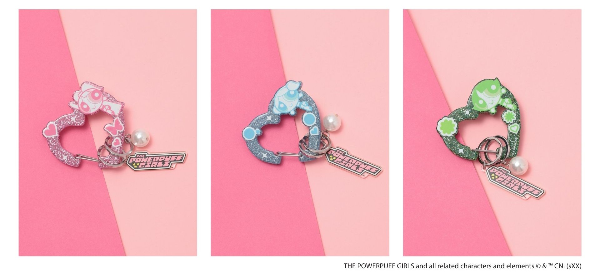 「パワーパフ ガールズ」のキュートでパワフルな世界観に親和性を感じ実現した今回のコラボレーションでは、「tiny tiny」で大人気のカラビナや、何が出るかお楽しみのブラインドチャームに加え、保冷バッグ、持ち運び用のケースまでかわいい折りたたみうちわ、シャワーサンダル、どこか懐かしいPVC素材のお財布など、これからのアクティブシーンに向けて気分を上げてくれるようなアイテムをラインアップ。「パワーパフ ガールズ」らしいカラーリングに、ラメやオーロラをミックスさせた”見て楽しい、持って楽しい“特別なコレクションです。