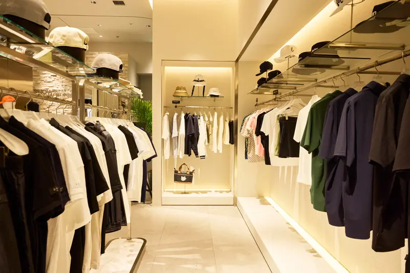 スタイリッシュな店内には、サマーシーズンにはゴルフウェア、ウィンターシーズンにはスキーウェアを展開。