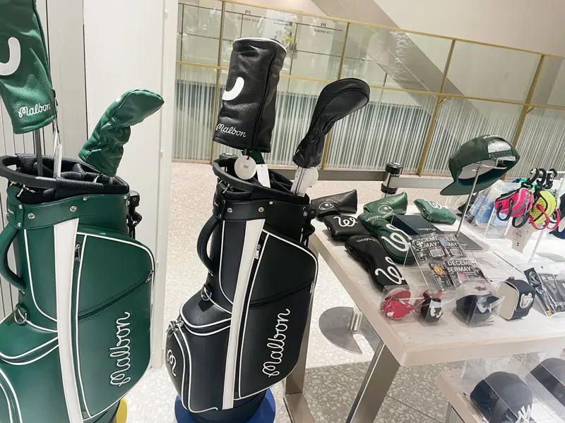 ゴルフウェアでは、Malbon Golf(マルボン ゴルフ)、A.P.C. GOLF(アーペーセーゴルフ)J.LINDEBERG(ジェイリンドバーグ)、1PIU1UGUALE3(ウノピゥウノウグァーレトレ)、ANEW(アニュー)など、厳選されたアイテムがラインナップ。
