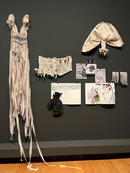 バスケット織りの技法で制作された硬質なジャケット、繊細な網のように身体を包むボビンレースのドレス、薄い木材で作られ袖部分に重厚な金属を組み合わせたジャケットなど、素材の対比が見事に表現されている。想像力が豊かであるだけでなく、高度な技術とクラフトの必要性を感じさせる作品群が並ぶ。同展は、伝統的な技術と現代的なデザインを組み合わせた作品を展示することによって、来場者にクラフトの価値やファッションの未来について考えるきっかけを与える内容となっている。