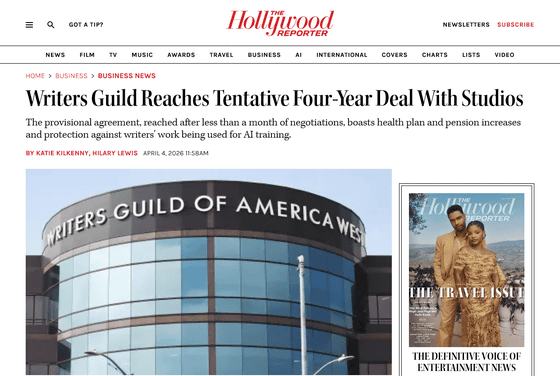 全米脚本家組合(WGA)が、映画スタジオやストリーミングサービスを代表する映画テレビ製作者協会(AMPTP)と4年間の暫定契約に合意したことが報じられました。合意内容には健康保険と年金への資金増額やストリーミング配信の印税増額のほか、作品がAIの学習に利用されることを防ぐための保護措置の強化も含まれています。