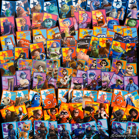 1セット10枚入り。専用の台紙付きで、ピクサーのキャラクターたちをコレクションして楽しめる。