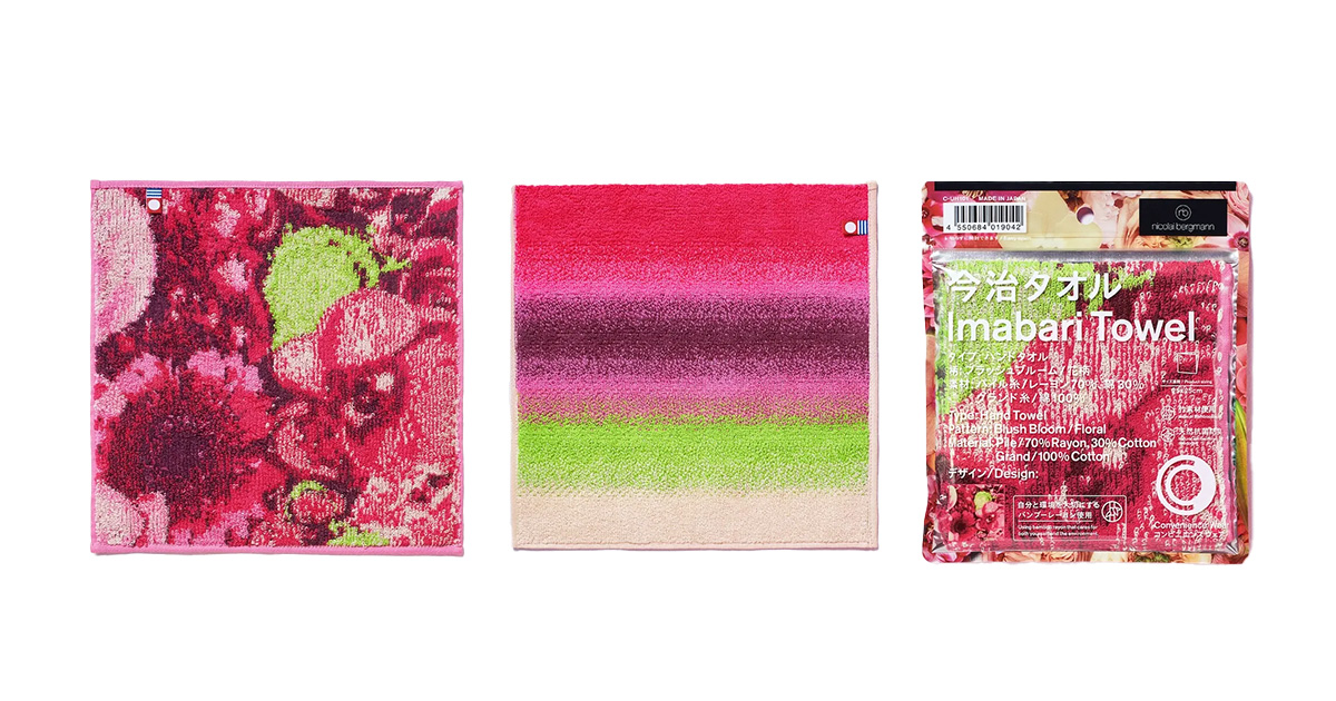 「コンビニエンスウェア(CONVENIENCE WEAR)は、4月17日、「ニコライ バーグマン フラワーズ & デザイン(Nicolai Bergmann Flowers & Design)」との“今治タオルハンカチ”(2種、880円)を数量限定で発売する。デザインは、“日頃の感謝”や“大切な人への想い”をフラワーボックスイメージし、「コンビニエンスウェア」の象徴的なグラデーションで表現した。
