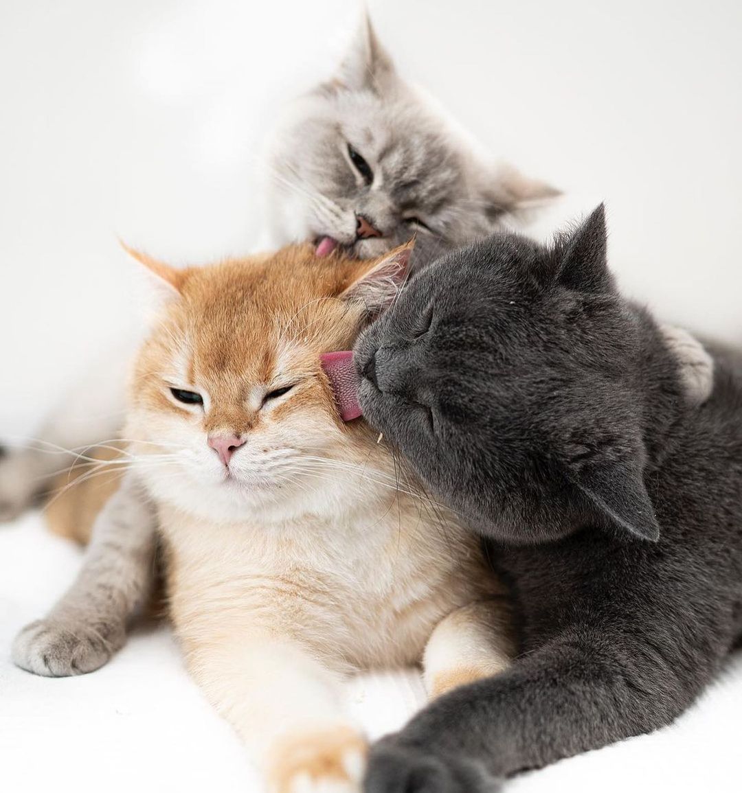 今日の猫は仲良し3匹組のシンバ、エイミー、ミロ🐈一番下のミロのなんともいえない表情が愛おしい😂けれどお互い信頼し合っている様子が伝わってきてこちらもほっこり♡