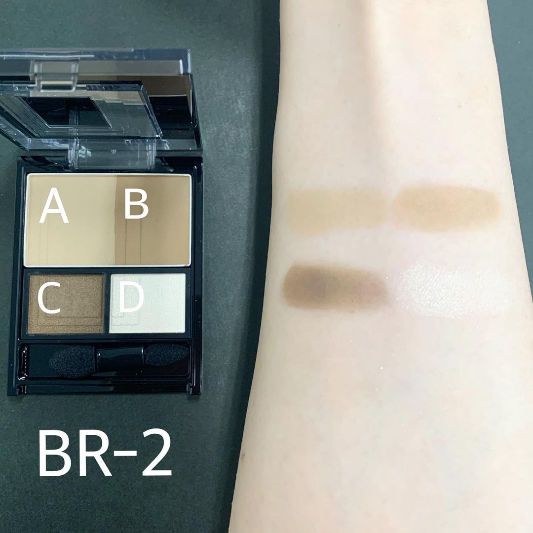 写真Aの肌影カラー、Bの立体感カラー、Cのダークカラー、Dの3Dハイライトの4色を順につけることで盛らないのに、自然に立体感をつくれるアイテム。肌なじみの良いAとB、しっとりと密着しきらめくCとDの効果で重ねづけをしても濃すぎる目元にはならず、抜け感も演出できます✨