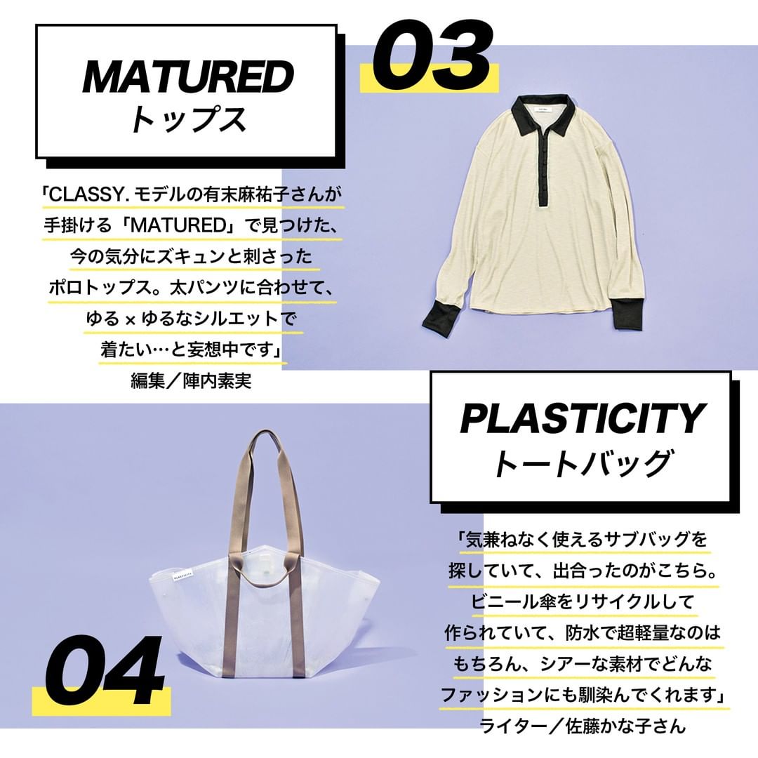 #classymagazine #CLASSYONLINE #自腹買いアイテム #購入品 #お買取 #WRINN #リン #ワンピース #カラーワンピース #オレンジ #NewBalance #ニューバランス #スニーカー #MATURED #マチュアード #トップス #ポロシャツ #PLASTICITY #プラスティシティ #トートバッグ #サブバック #シアーバッグ #ビニールバッグ #アップサイクル #エシカル #サステナブル