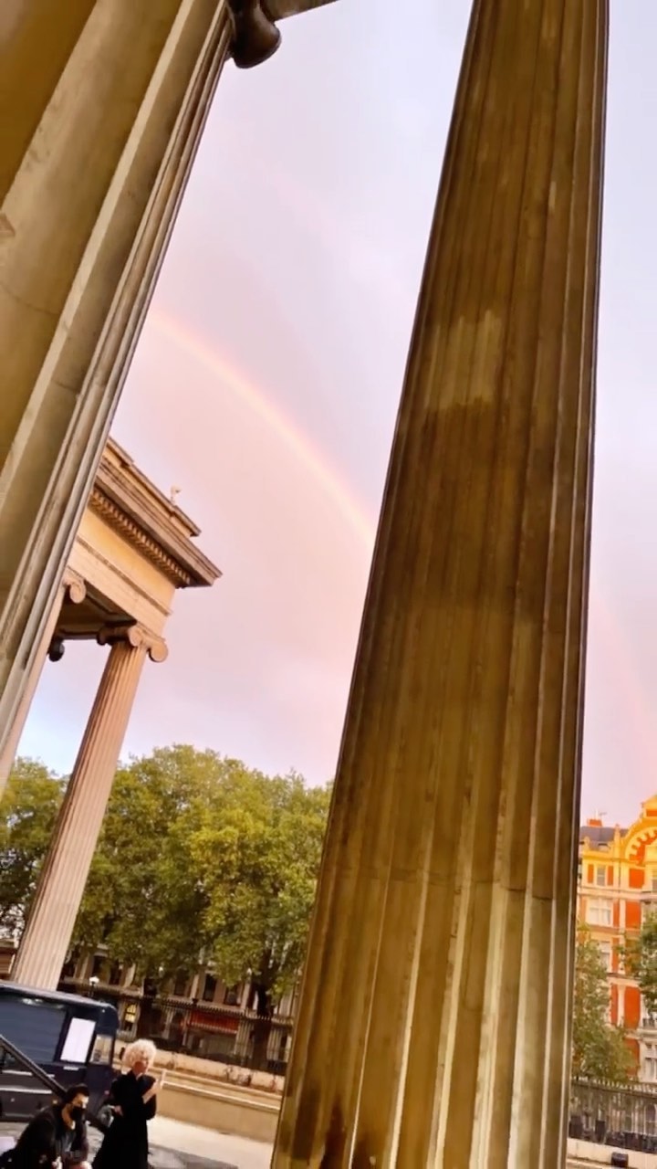 どのゲストも満面の笑顔で会場を後にしたERDEMのショー。開始と同時に、幸運をもたらすと伝えられる二重の虹が現れた!