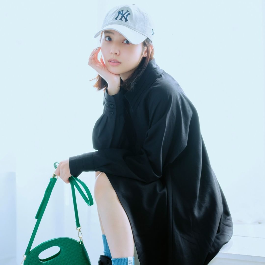 甘めミニワンピをキャップやスニーカーで着くずしてカジュアルに👟✨