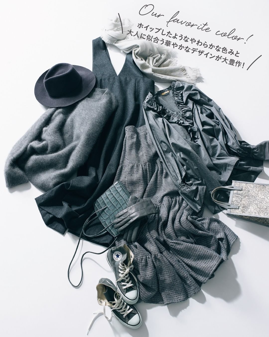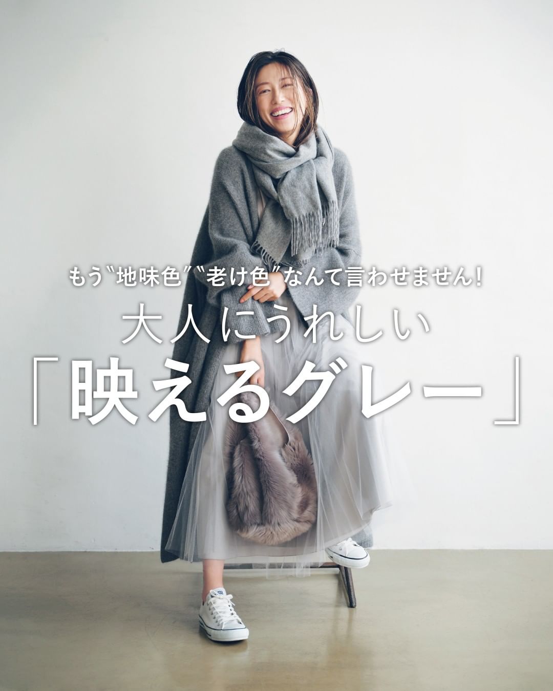 #里田まい さん #グレーコーデ #ワントーンコーデ #ニットコート #チュールスカート #コーデ #秋コーデ #冬コーデ #fashion #今日の服 #ootd #秋冬コーデ