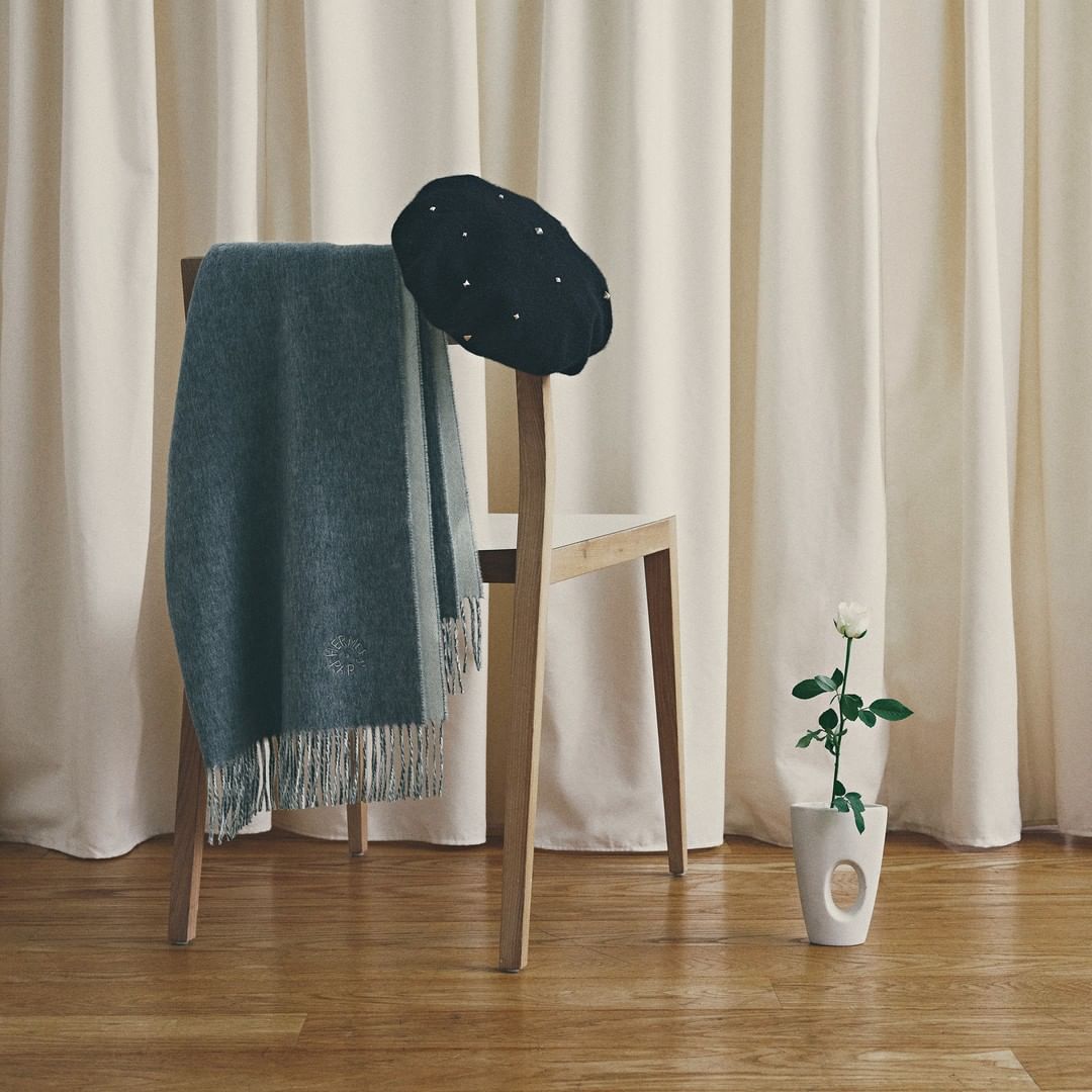 写真1枚目は #エルメス。とろけるような質感のカシミヤ・ダブルフェイスストールと、カシミヤに「クルー・メドール」のスタッズをちりばめたベレー帽です。写真2枚目はロロ・ピアーナ。プルオーバーとパンツの素材は、生後1年未満のヒルカス仔山羊の下毛をすいて集めた一生に一度しかできないベビー・カシミヤ。写真3枚目はバーバリー。リブニットセーターのフロントには、取り外しできるシルクスカーフがあしらわれています💐(編集U)