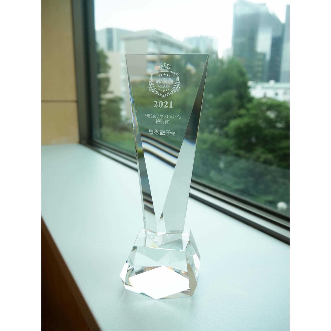 そして2枚目は、徹子さんにお贈りしたwith OL大賞「働く女子のレジェンド」部門のトロフィー🏆クリスタルの輝きが眩しく、重厚感も感じさせるデザインに仕上げました✨