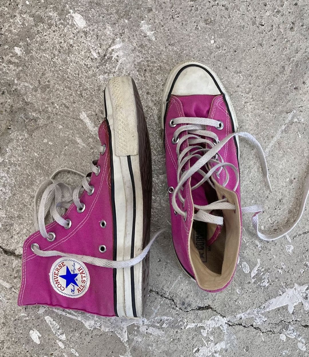 10代の頃に、福岡の古着屋さんで買いました。最近はハイテクもよく履きますが、昔はローテクを履くことが多かったです。秋になったらこのグレープカラーを履くのが好き。毎年涼しくなってきたら出番です。