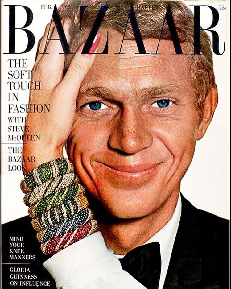 1965年に当時のハリウッドの大スター、スティーブ・マックイーンを表紙に起用したハーパーズ バザー。女性ファッション誌に男性を登場させるアイデアはとても画期的でバザーの新開地を開き、その後もハリウッドの最もホットな男性スターをたびたび表紙に登場させた。