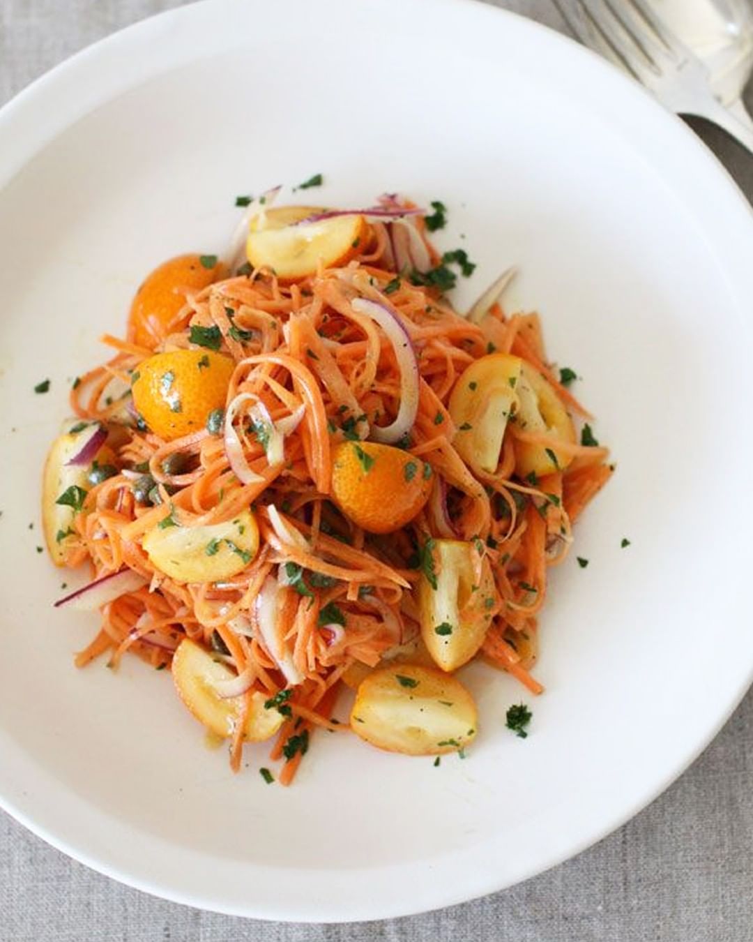 【#金柑レシピ】フレッシュな金柑とにんじん、ダブルの甘さが楽しいサラダ。さらに、サーモンと合わせれば、たちまちおもてなしにも使えるおしゃれメニューに変身!