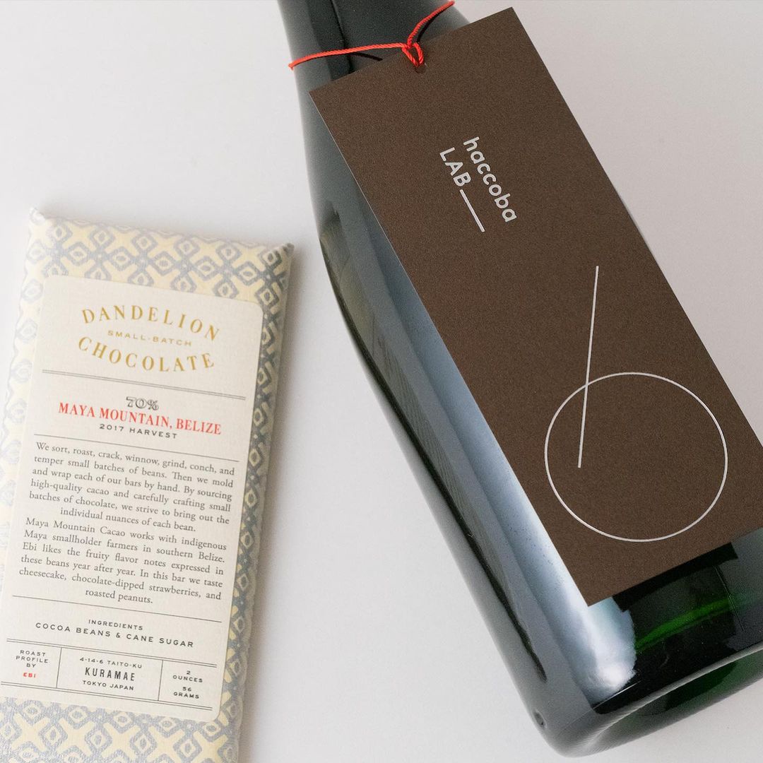 福島県南相馬市を拠点とする酒蔵「haccoba -Craft Sake Brewery-」(はっこうば)の、ダンデライオン・チョコレートのカカオハスクを使用したお酒「おこめとカカオのスタウト」。