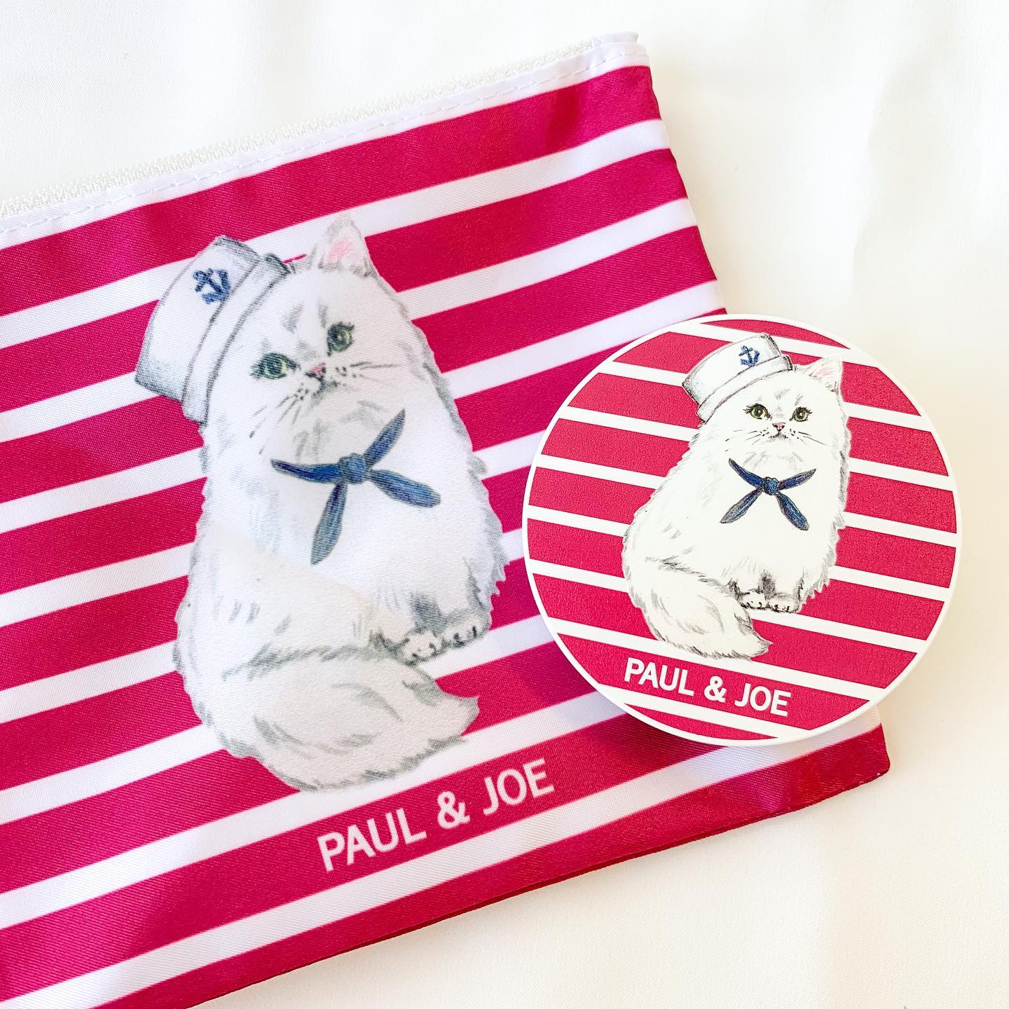 ネコがデザインされたキュートなコンパクトとお揃いのデザインのポーチがセットに🥺