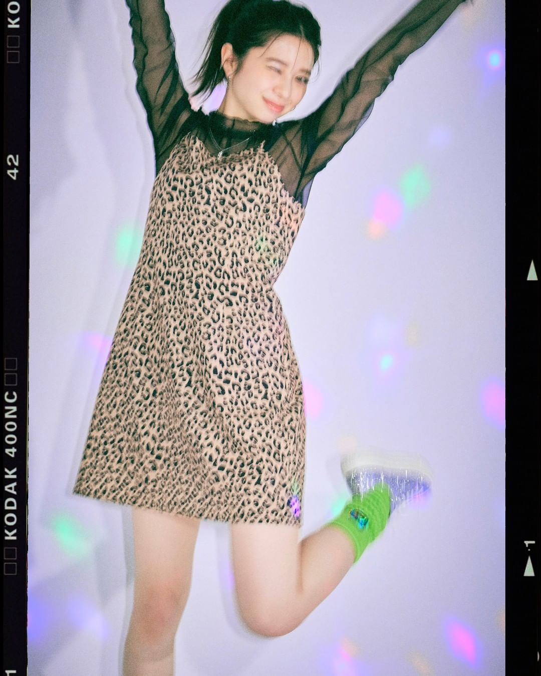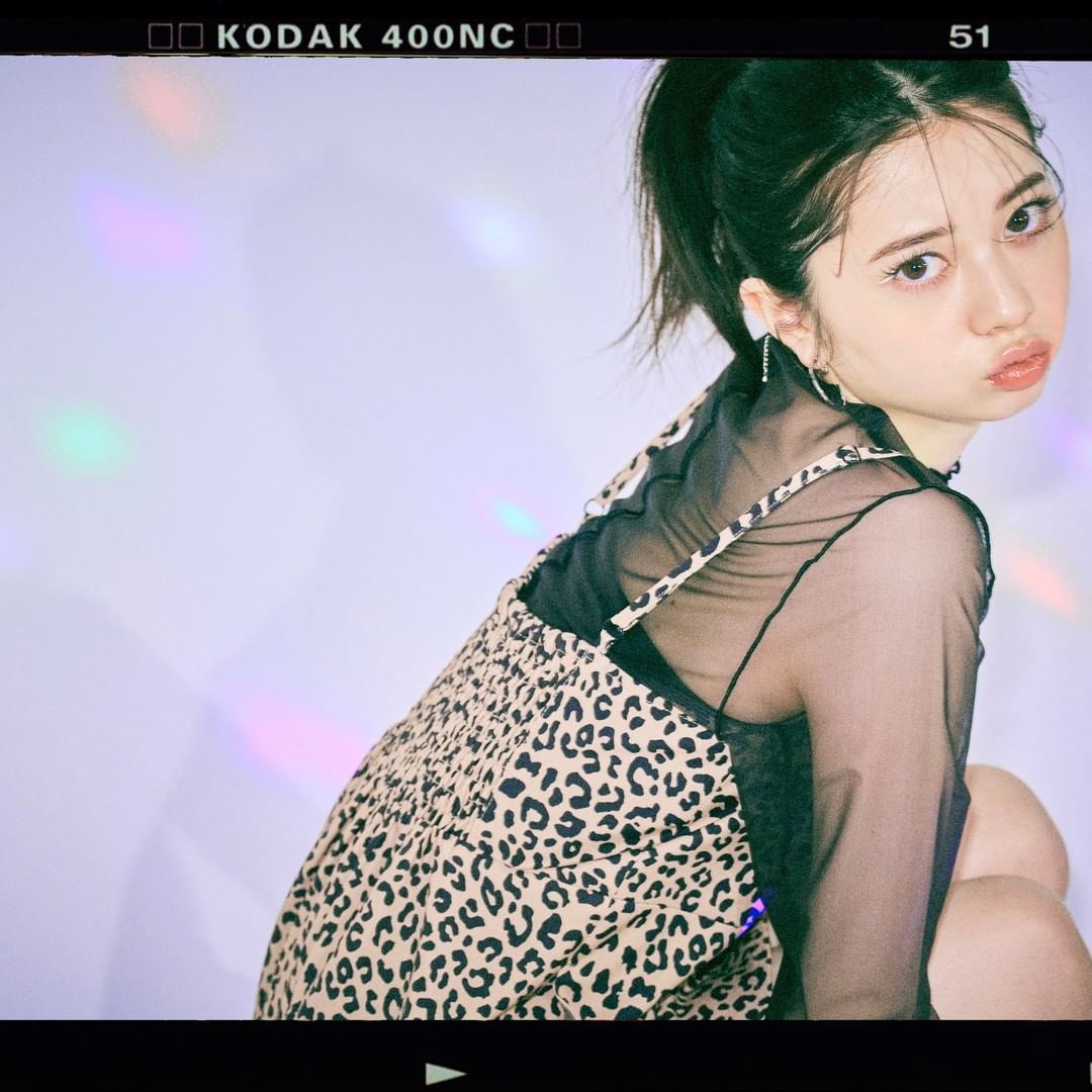 「選ぶのも撮影するのもめっちゃ楽しかった〜❗️ ひさびさのつけまつ毛😆 いちばんのギャルポイントは、やっぱりヒョウ柄のミニ丈ワンピ🐆 中に何を着るか悩んだ結果、透けトップスにして大正解。重たくなりすぎず、イケてるギャル感がアップした気がする✌🏻笑